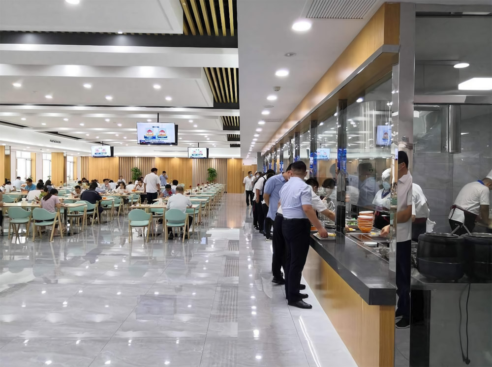 消费者在饭堂用餐前,可自由选择不同窗口以及不同价位的食品刷卡消费;食品包含套餐、单个全荤、小炒、面点挡、小吃、麻辣烫等等;饭堂需制定至低餐费标准(如3-15元/餐),以保证员工自由选择自由消费的权益。